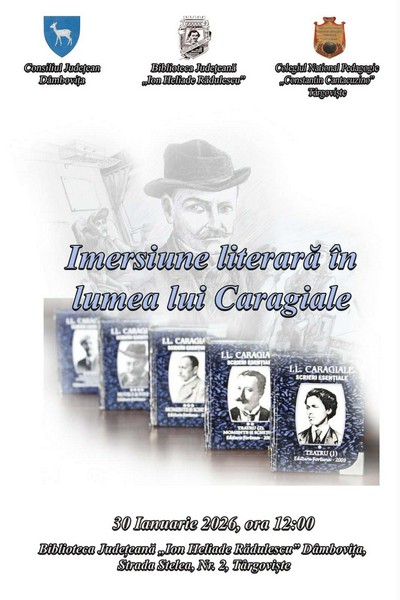Vineri, 30 ianuarie 2026, orele 12.00, Biblioteca Judeţeană „Ion Heliade Rădulescu” Dâmboviţa, în parteneriat cu Colegiul Naţional Pedagogic „Constantin Cantacuzino” din Târgovişte, organizează „Imersiune literară în lumea lui Caragiale” – program dedicat personalității marelui dramaturg.
